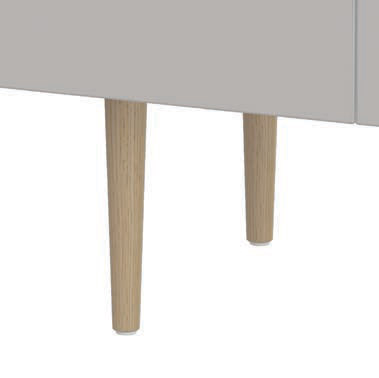 Pieds réalisés en bois de frêne, à section conique ronde (section initiale Ø38mm et section finale Ø24 mm), vernis. Vérins de réglage 0-15 mm