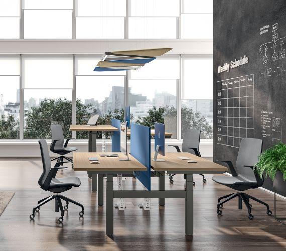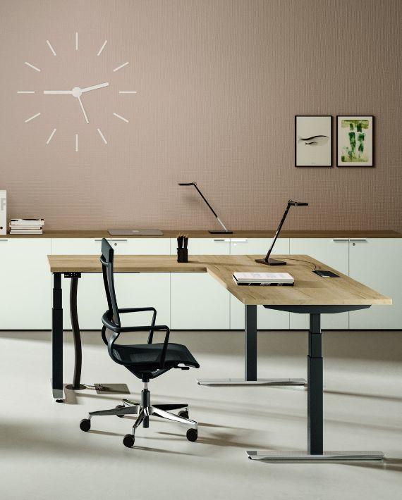 Bureaux réglables en hauteur : assistance-debout motorisé avec mémorisation de hauteur.