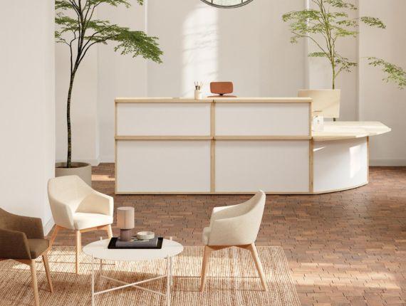 Le mobilier d'accueil est le premier point de contact avec vos visiteurs et reflète immédiatement votre image de marque. En 2026, les tendances privilégient un mobilier confortable aux lignes douces, pensé pour instaurer une atmosphère chaleureuse dès l'entrée. Les sièges ergonomiques et accueillants renforcent la sensation de confort, tandis que l'intégration numérique, bornes, écrans ou supports interactifs modernisent l'expérience. Dans cette même logique d'efficacité, des rangements discrets permettent de conserver un espace clair et parfaitement organisé. L'ensemble crée une ambiance immersive et expérientielle, capable de marquer positivement chaque visiteur et de valoriser son identité professionnelle.