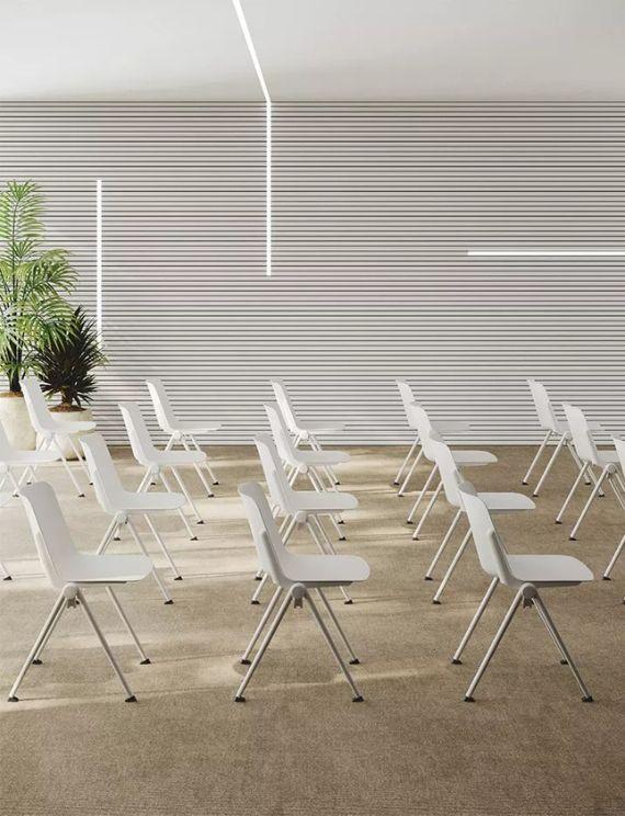 Chaises empilables avec accoudoirs pour les salles de conseil ou de réunion.