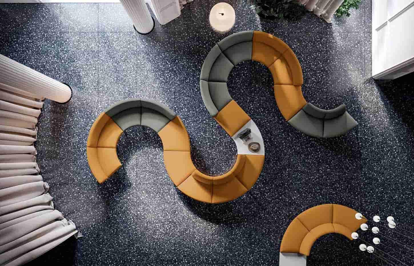 La gamme Aneto est composée de fauteuils à personnaliser et à combiner entre eux grâce par un système de couplage pour meubler des espaces spécifiques dédiés à l’hospitalité, par exemple les salles d’attente, les halls d’hôtel, les espaces salons dans les gares, les aéroports ou les espaces de coworking. La modularité de la gamme Aneto, initialement née d’une pièce unique, un canapé, puis déclinée en version courbe aux formes plus rondes et enveloppantes, permet des associations à des meubles de différents styles. Sa force réside dans sa polyvalence et dans l’invitation à jouer avec les possibilités presque infinies. Aneto est idéale pour créer des compositions courbes et douces, avec des combinaisons bicolores de poufs et de tables coordonnées pour accueillir les effets personnels.