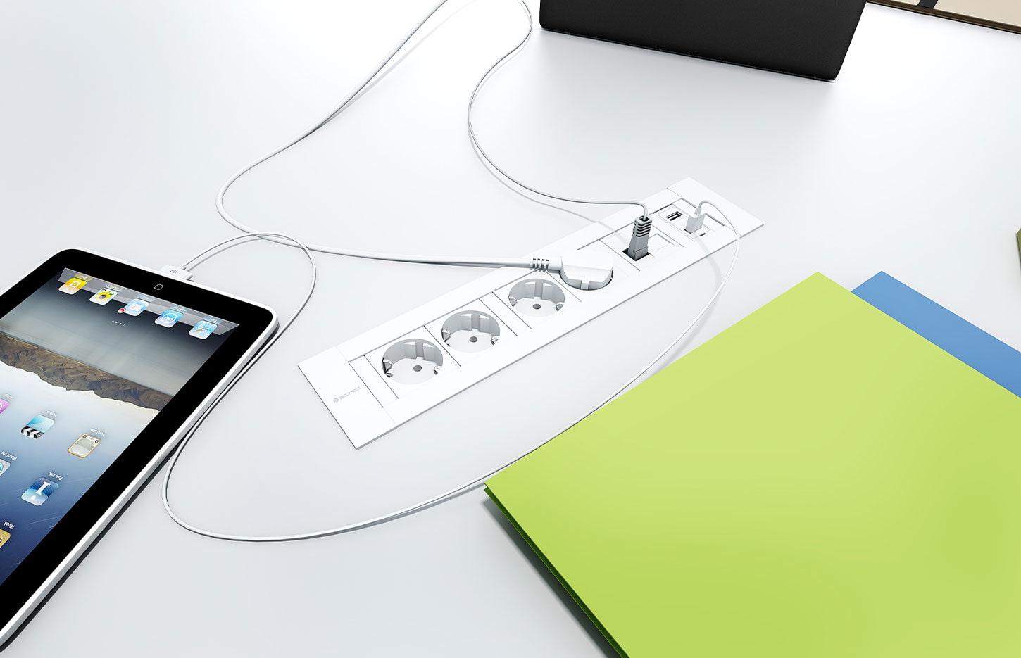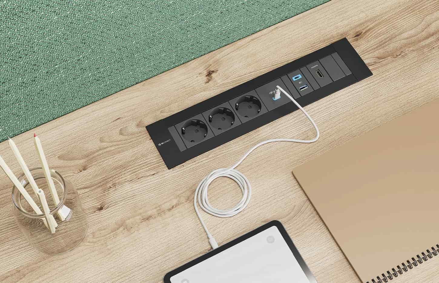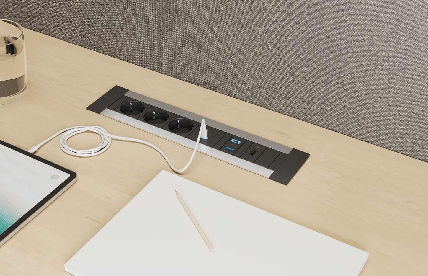 La gamme Bloc électrique est une solution encastrable compacte, idéale pour intégrer électricité, USB et multimédia dans les bureaux, tables de réunion ou espaces collaboratifs. Grâce à son design discret et personnalisable, elle s’adapte même aux espaces réduits. Disponible en plusieurs configurations (prises électriques, USB A+C, modules de connectivité), elle offre une grande flexibilité d’usage. Son profilé en aluminium, proposé en finition anodisée, blanc ou noir, assure robustesse et élégance. Facile à installer et à entretenir, les blocs électriques combinent ergonomie, esthétique et performance.