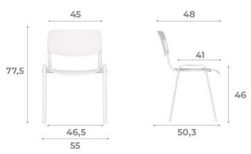 L'assise et le dossier sont fixés entre eux par 2 tubes ovales en acier laminé à froid de 30 x 15 millimètres.