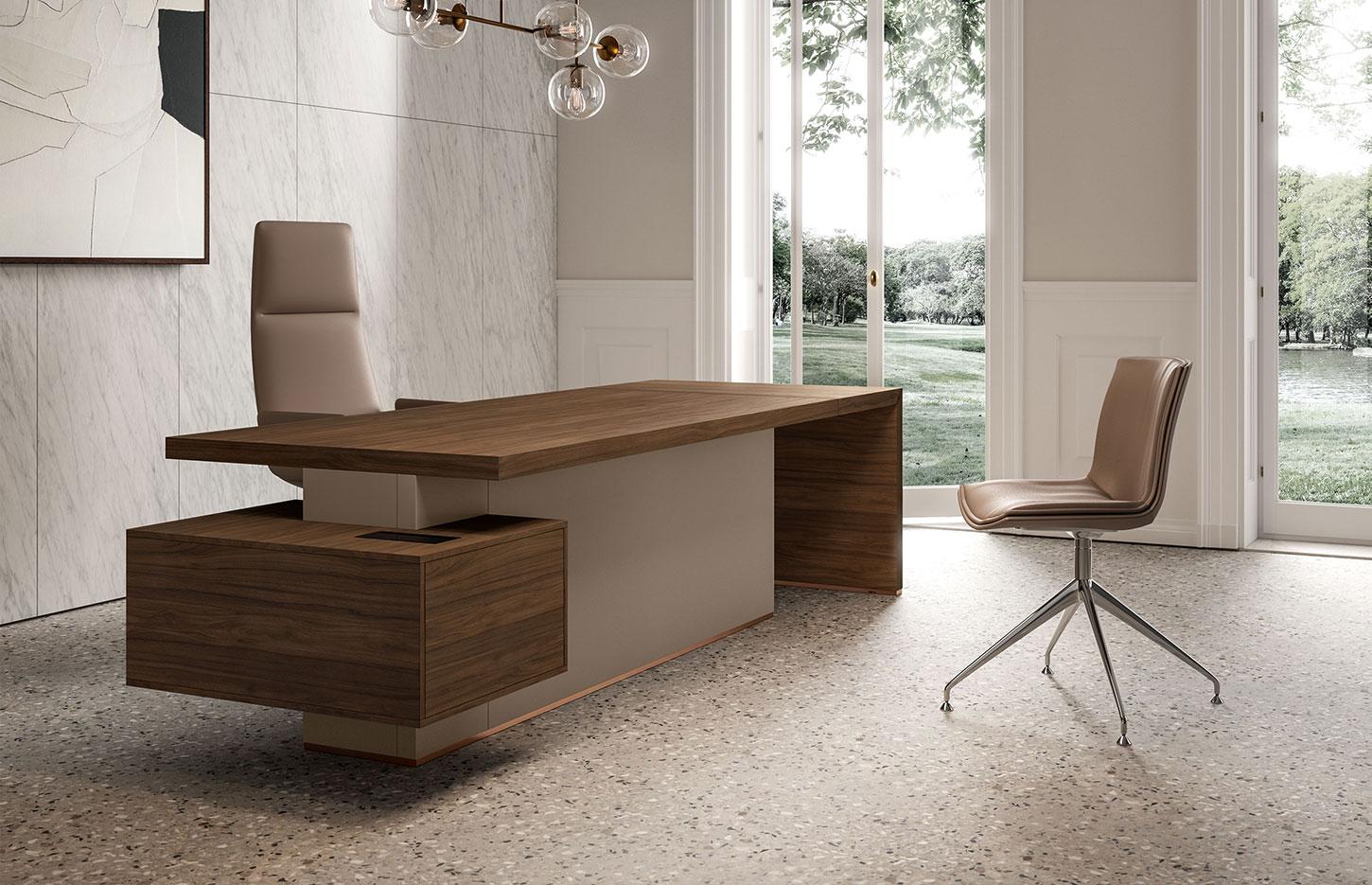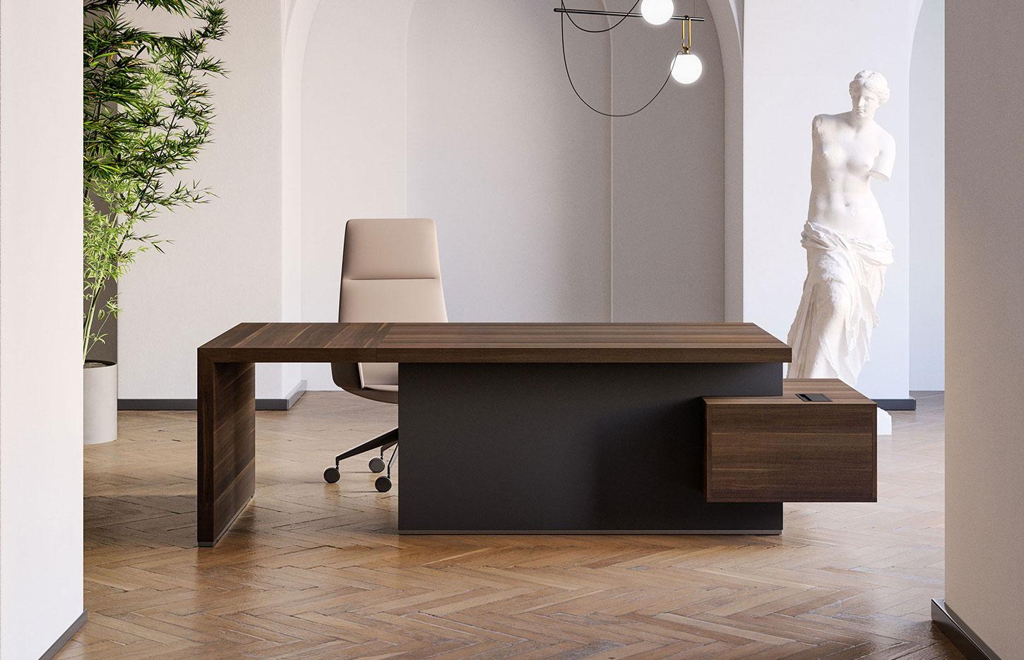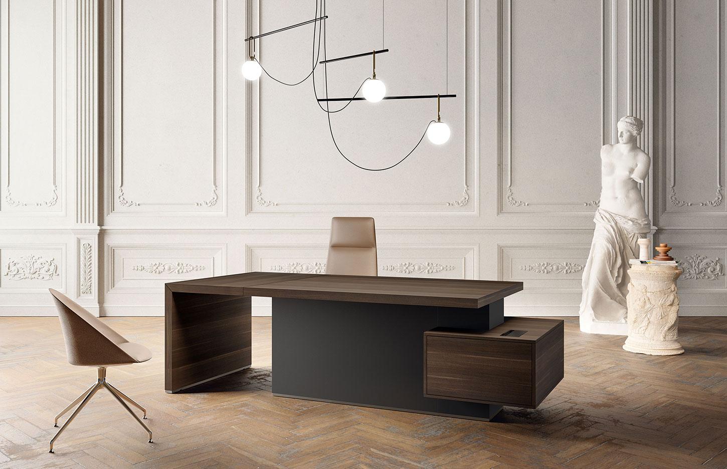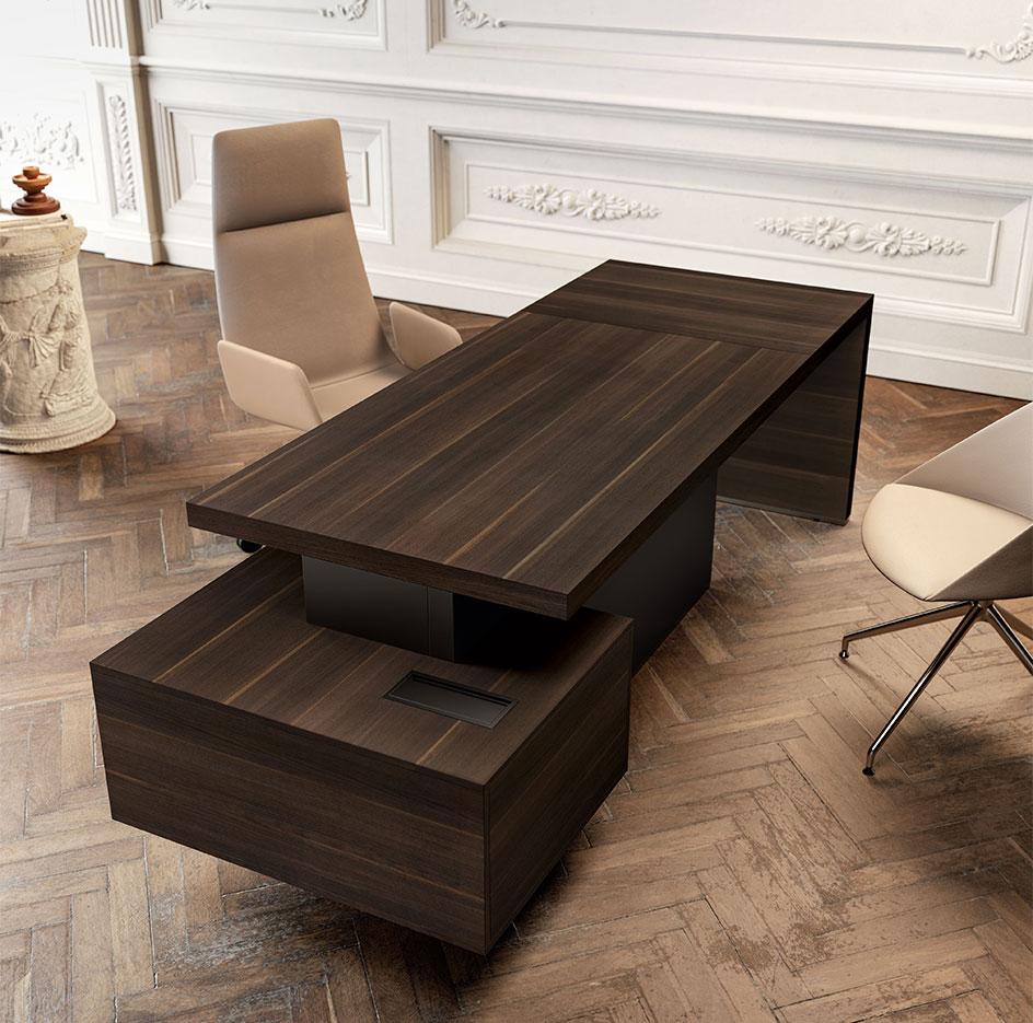La version Imperial du bureau Esino repousse les limites du mobilier de direction pour incarner un véritable symbole de distinction. Avec ses lignes architecturales et ses finitions d’exception, il allie imposante présence et équilibre visuel dans un design résolument contemporain. Son large plateau, soutenu par des structures pleines et sculpturales, affirme une stature présidentielle tout en conservant la pureté et la légèreté caractéristiques de la collection Esino. Les matériaux nobles — essences bois précieuses, laques mates ou brillantes, verre et métal poli — se combinent harmonieusement pour créer un espace de travail aussi fonctionnel que représentatif. Conçu pour les environnements de direction exigeants, Esino Imperial séduit par son sens du détail, sa modularité et son raffinement intemporel. Plus qu’un simple bureau, c’est une pièce maîtresse qui exprime la réussite et la maîtrise, au cœur de chaque décision.