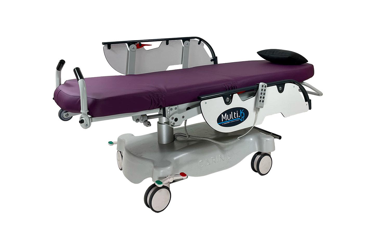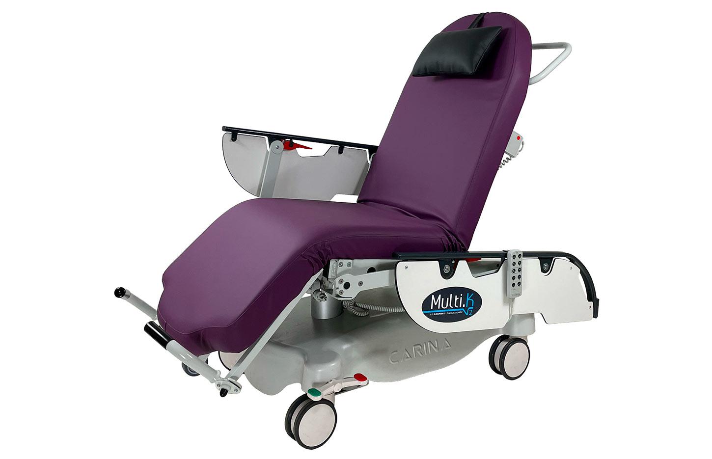 Le fauteuil ambulatoire électrique Multika est conçu pour offrir un confort optimal aux patients et une ergonomie parfaite aux soignants lors des transferts et des soins ambulatoires. Équipé d'un matelas monobloc haut de gamme (avec mémoire de forme), ce fauteuil médical garantit une position confortable, même lors de séances prolongées. Sa hauteur variable électrique, son dossier et sa jambière réglables par vérins électriques, ainsi que sa position de Trendelenburg permettent un ajustement précis à chaque besoin clinique. Les 4 roulettes à freinage centralisé et la barre de poussée côté tête assurent une mobilité simple et sécurisée. Fabriqué en France, ce fauteuil ambulatoire est idéal pour les services d'ambulatoire, d'hôpital de jour, les unités de soins et les cliniques privées recherchant un équipement médical haut de gamme durable.