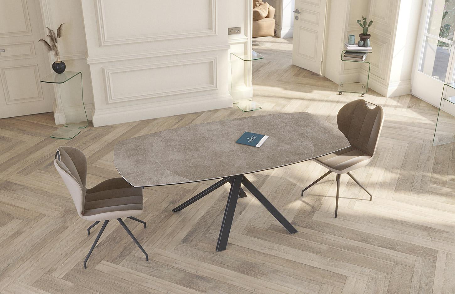 La table de réunion Gizeh est pensée pour allier style et convivialité au cœur de vos espaces professionnels. Son design épuré et son plateau en céramique apportent une touche naturelle et élégante qui invite à la collaboration. Sa forme accueillante et ses finitions haut de gamme créent une atmosphère chaleureuse, idéale pour des réunions productives ou des échanges informels. Grâce à son piétement croisé en acier noir mat, la table affirme une présence moderne et design. Fonctionnelle et modulable, elle s’adapte aussi bien aux petites équipes qu’aux grands rendez-vous. Son plateau résistant et facile d’entretien en fait un choix durable pour un usage intensif. La Gizeh combine esthétique, confort et praticité pour transformer chaque réunion en moment d’inspiration.