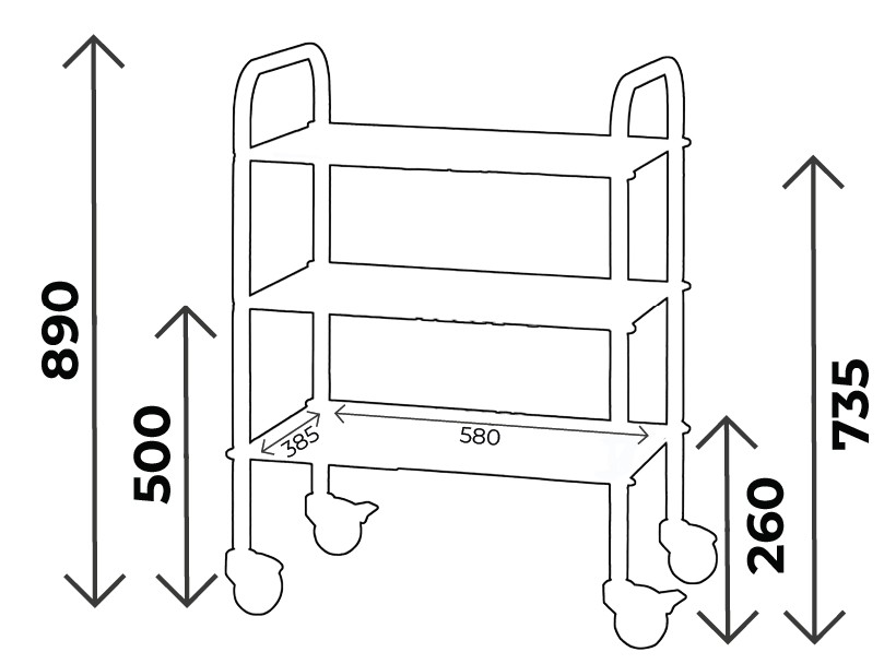 Guéridon 3 plateaux inox 600x400, sans galerie