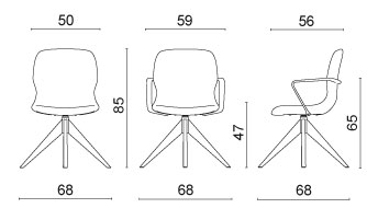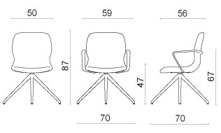| Chaise 4 pieds | Chaise piétement traineau | Chaise pivotante pied bois | Chaise pivotante pied pyramidal aluminium | ||