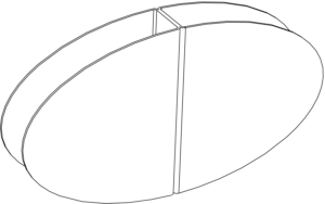Panneau mélaminé alvéolaire Nitech® d’épaisseur 19 mm, à coins arrondis (rayon 150 mm). Recouvert de mousse de mélamine à absorption acoustique et de tissu.