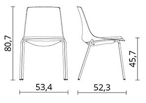 | Chaise 4 pieds Pieds noirs référence : 1W1N Pieds chromés référence : 1W1C |