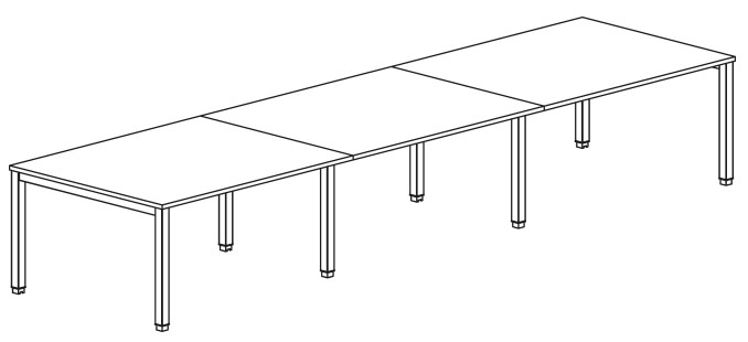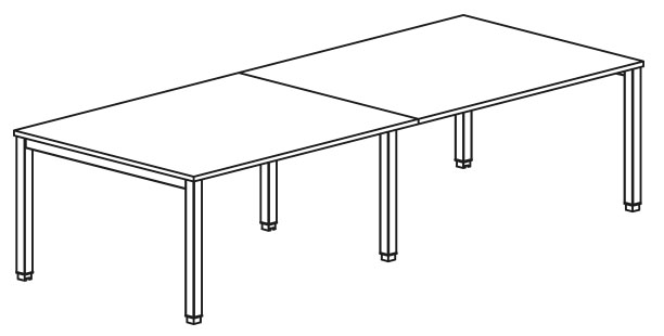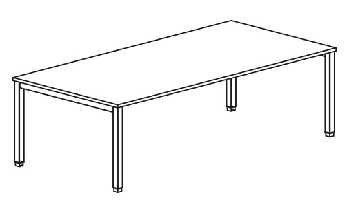 Les montants et la traverse sont emboités et unis par soudure MIG. Chaque traverse dispose de 2 points d’ancrage pour fixer le plateau. Chaque latéral comprend deux patins en ABS (argent ou blanc) et des vérins de réglage (M6 et hauteur ± 1 cm).