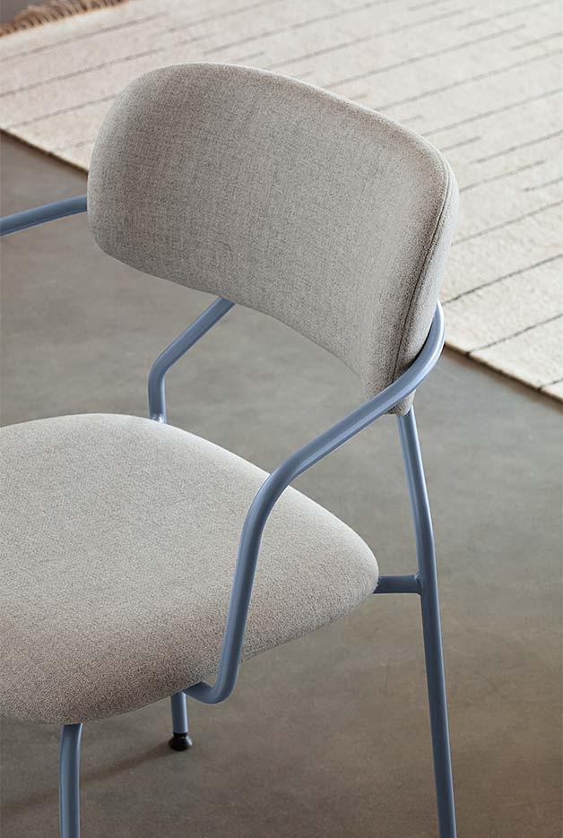 Chaise avec dossier et assise rembourrés, avec accoudoirs et piètement à 4 pieds