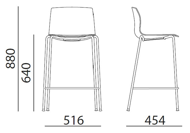 Tabouret H64 cm pieds luges Non tapissé (polypropylène) réf. : KB11P Assise tapissé réf. : KB11 Assise/dossier tapissé réf. : KB13 |