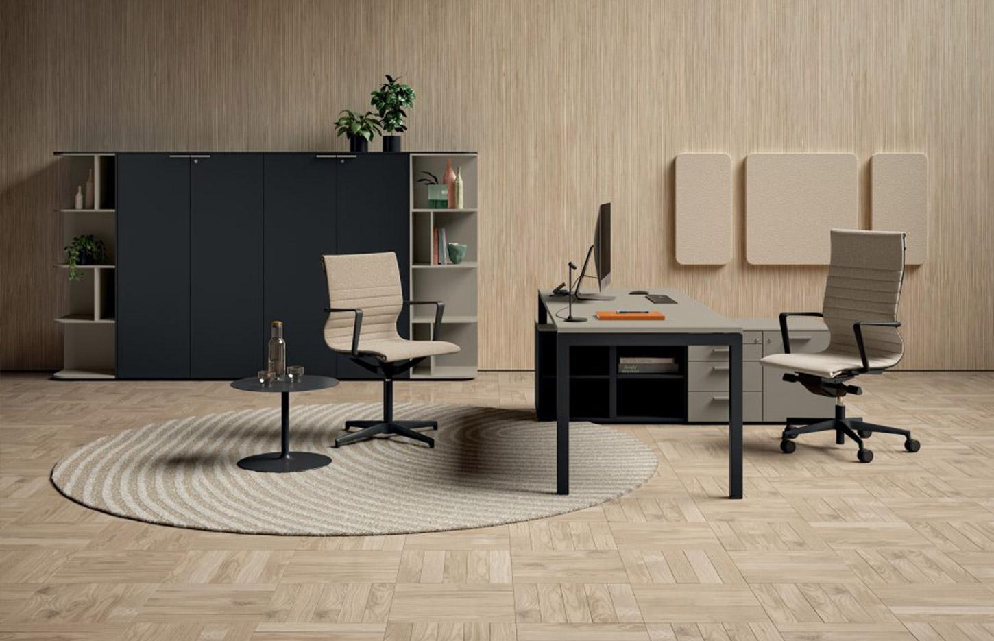Aménager un bureau avec une combinaison de style et d'efficacité est un défi. Le bureau Trièves offre une solution qui ne fait aucun compromis sur le design contemporain. Pour ajouter une touche supplémentaire à l'espace ouvert, la gamme propose une gamme de caissons à tiroirs et de modules de service, avec des fonctionnalités telles qu'un petit plateau en abs pour ranger les documents.