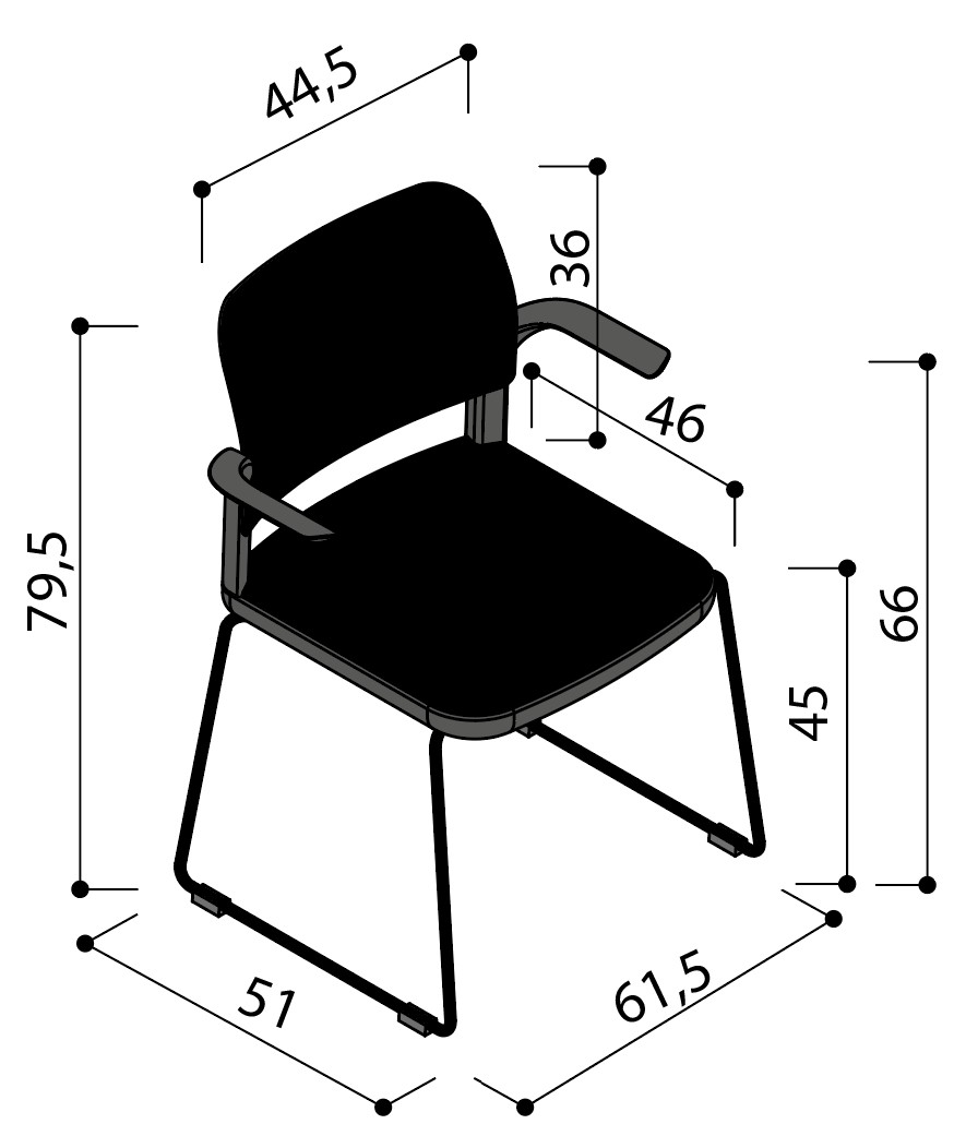 Pieds traineaux avec accoudoirs fermés Noire réf. : 1SQP71 |