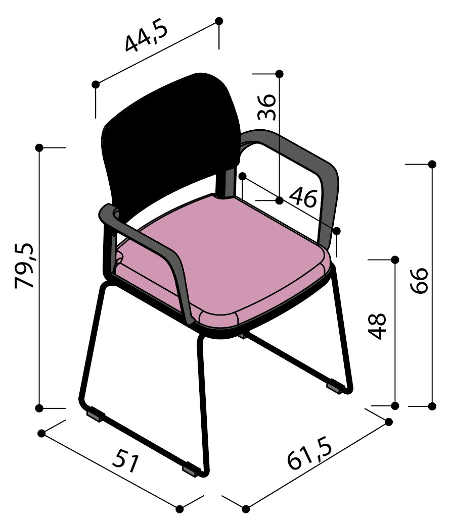 Base pyramidale sur patins avec accoudoirs fermés Noire réf. : 1SQP96 |