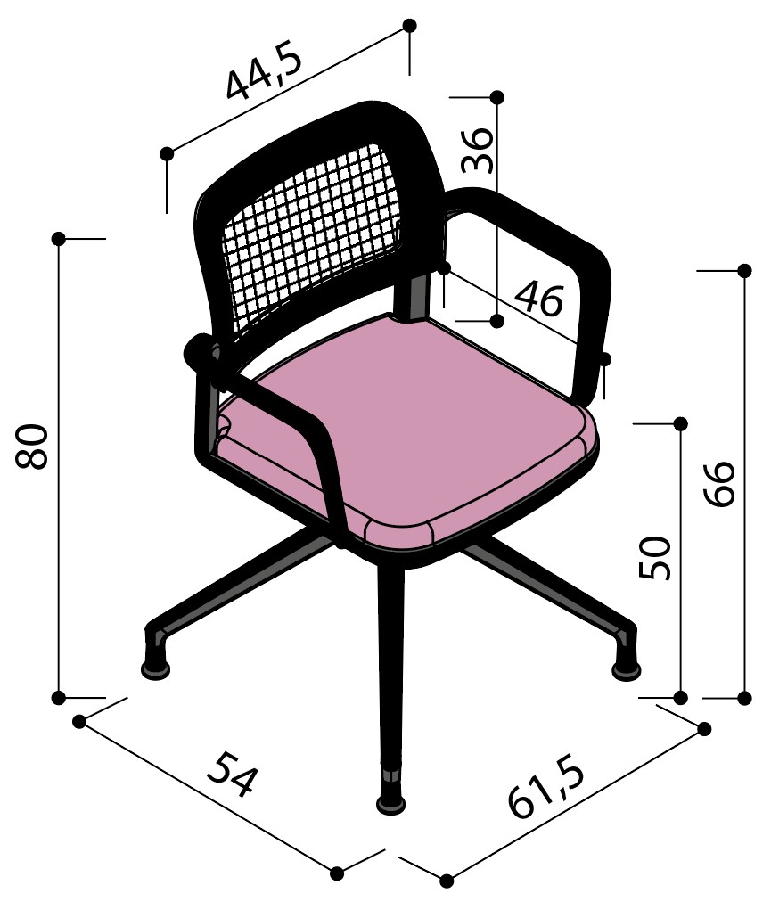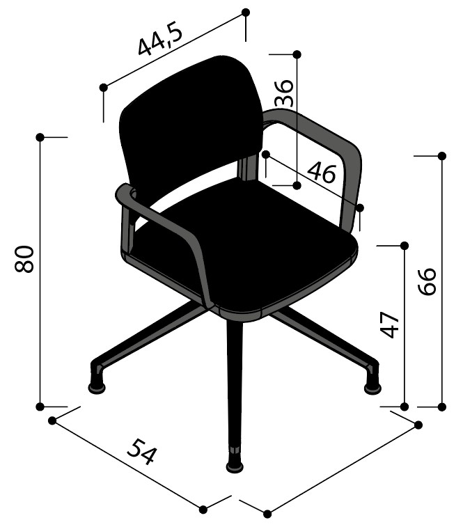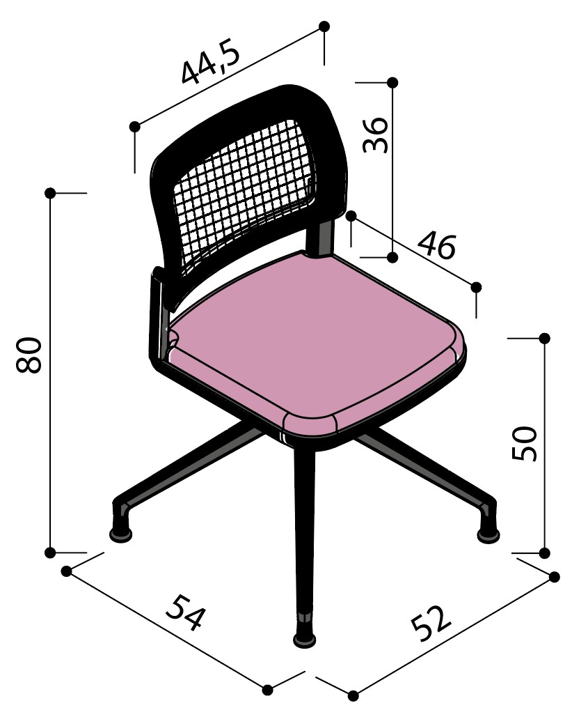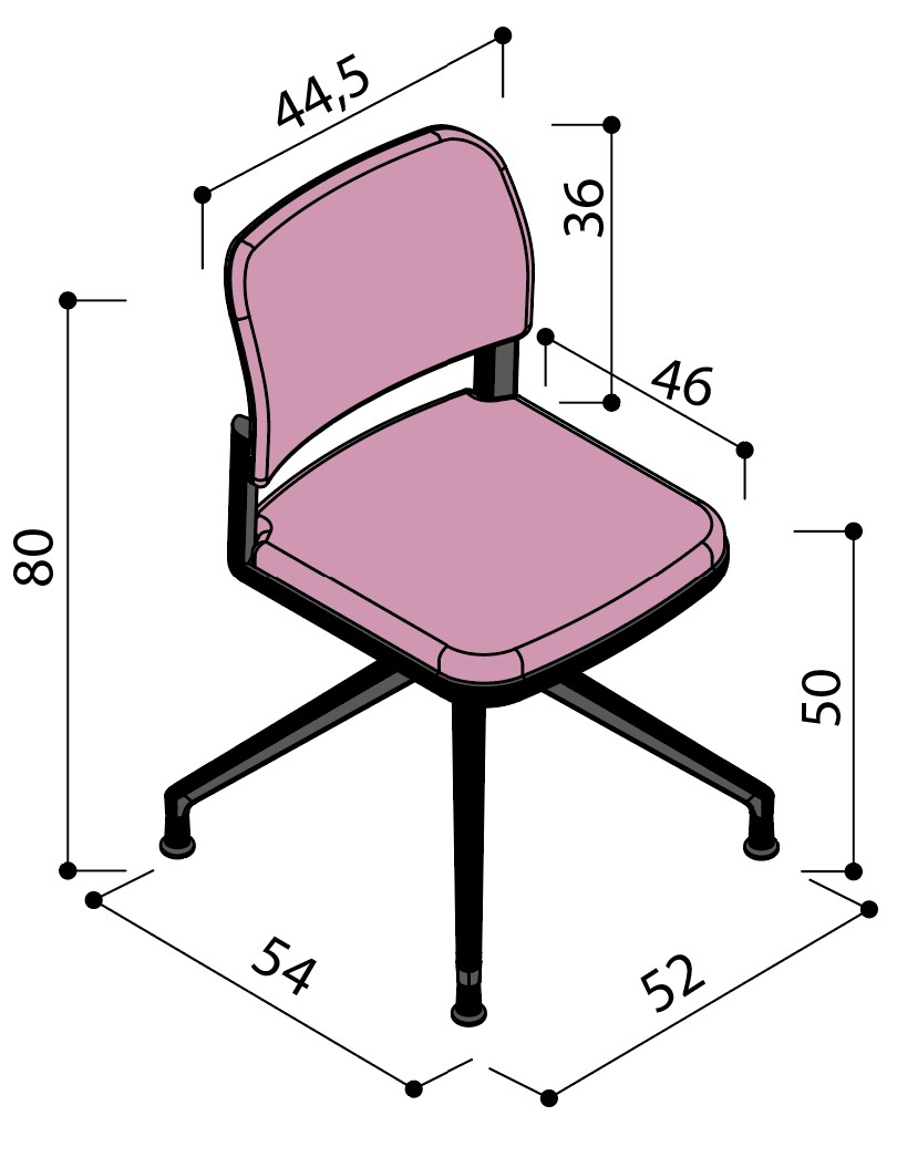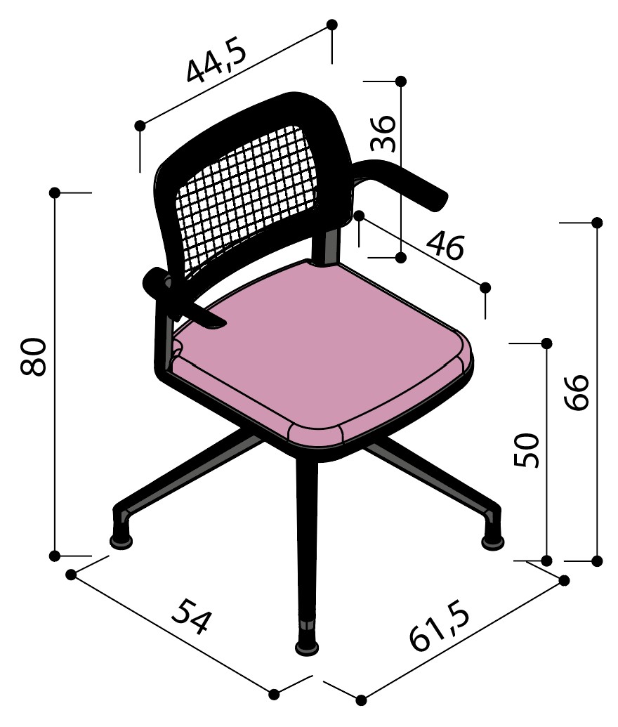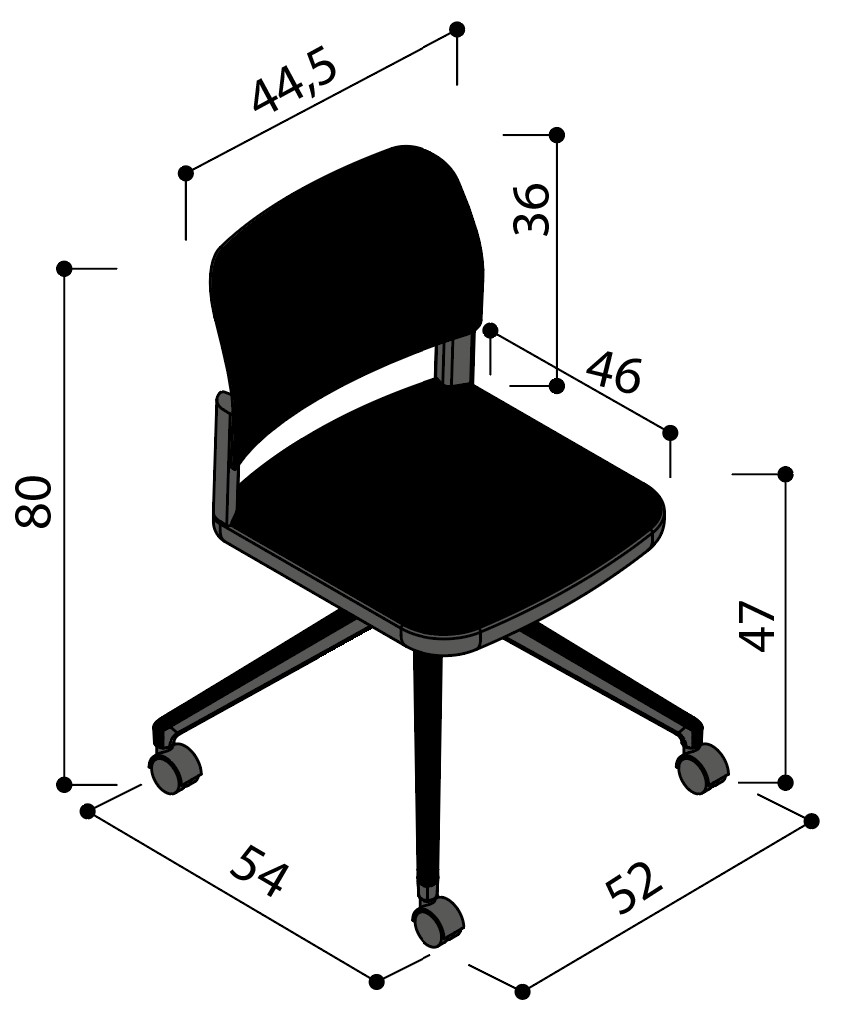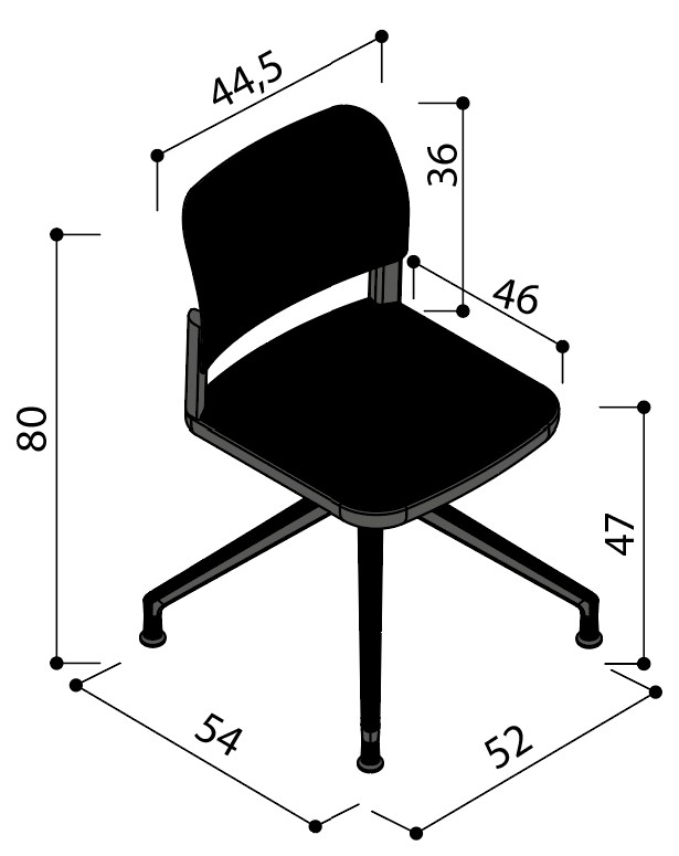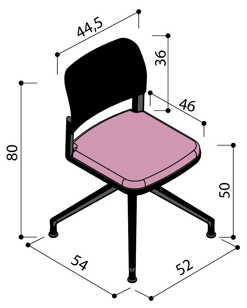 - Base pyramidale en nylon noir, 680 mm de diamètre, à 4 rayons, dotés de roues en nylon noir ou blanc de 50 mm de diamètre autofreinantes avec pivot en acier galvanisé à raccord rapide ou dotés de patins en caoutchouc.