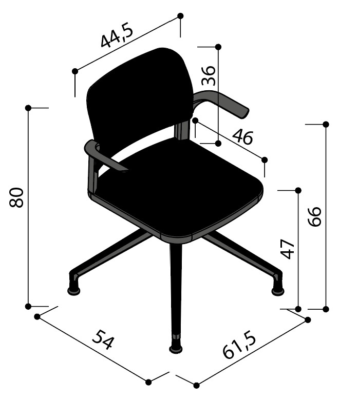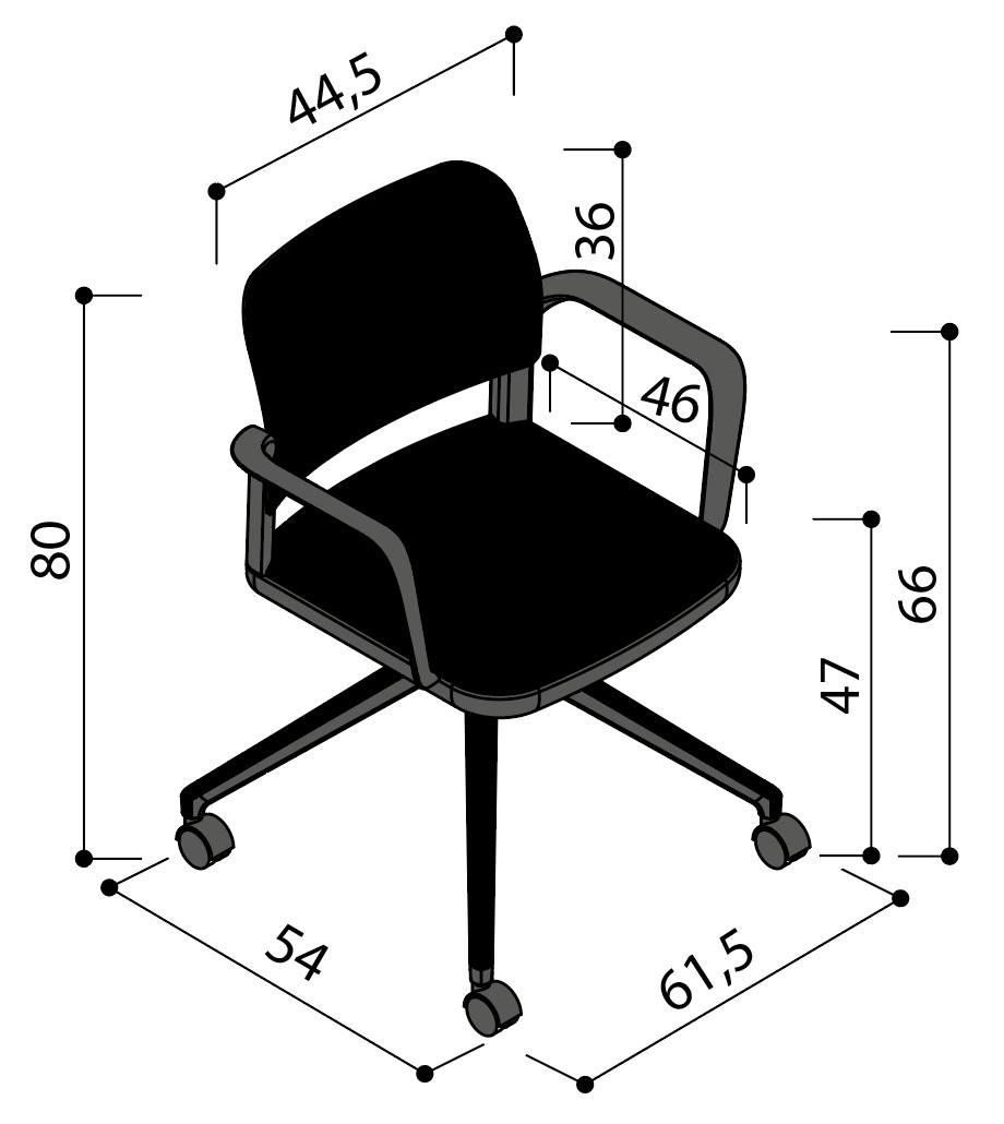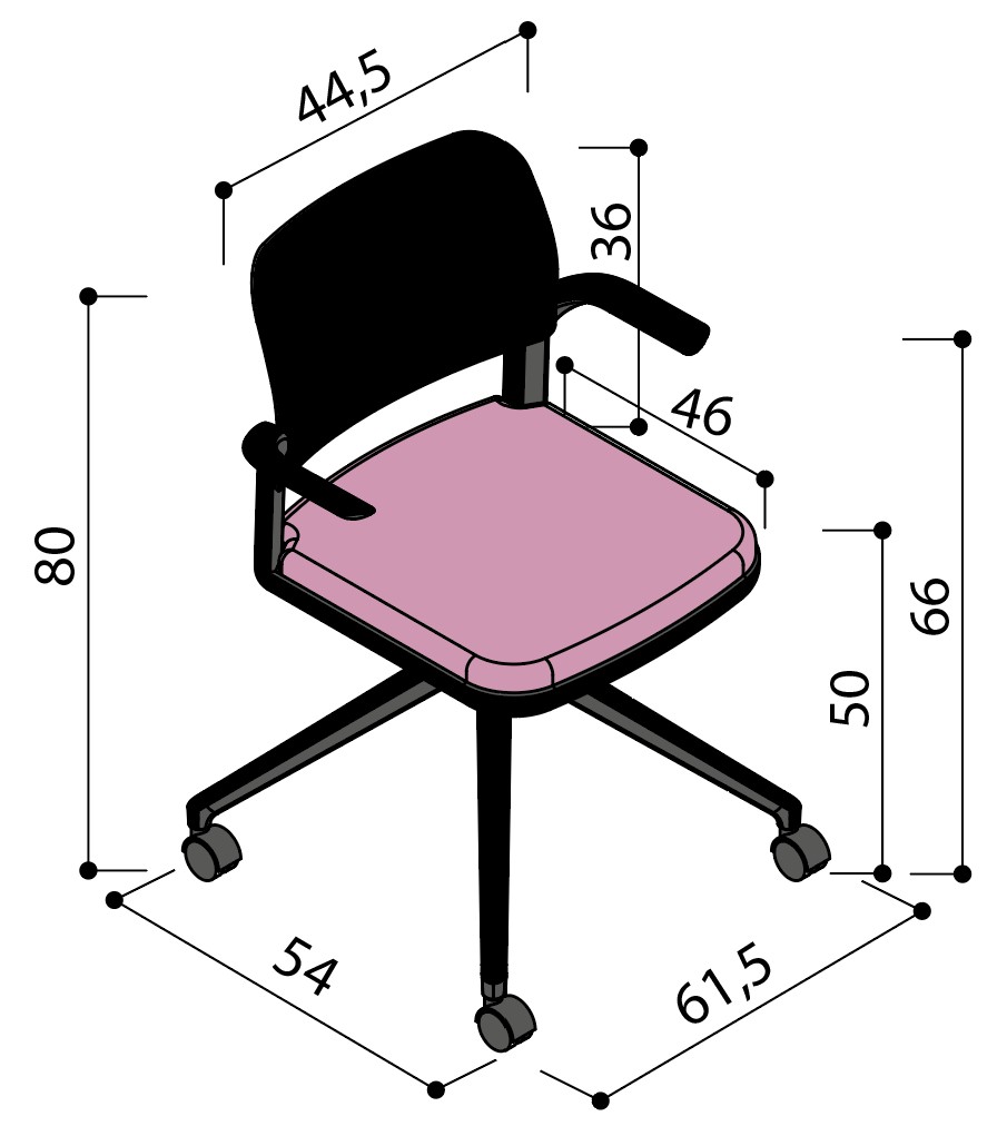Base pyramidale sur roulettes avec accoudoirs ouverts Noire réf. : 1SQP80 |