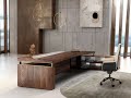 Bureau avec plateaux en similicuir et bois et retour vers l’extérieur